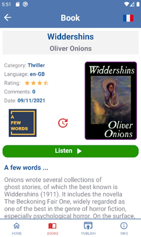 Listen My Book is an application allows you to listen extracts of free audio-books without copyrights or post your own texts. You could also share your feelings and post comments about books and texts you listened to.