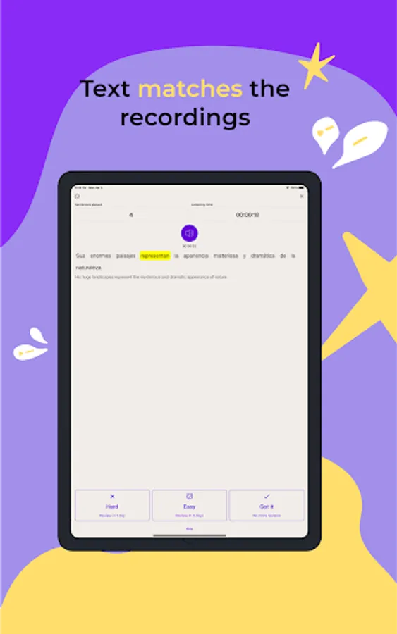 📖 Interactive Transcripts: Access word-for-word transcripts with real-time highlighting that follows the recording, allowing you to visually track and reinforce your understanding.