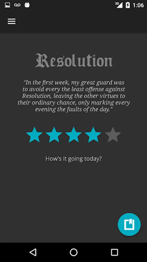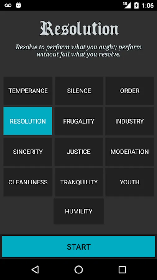 This is an app designed to help you monitor yourself so you can identify and improve problem areas in your life. Begin by selecting your primary virtue that you want to start working on. Make an effort to improve that quality in yourself each day. Every night, a notification will remind you to review your virtues, and log them in your journal.