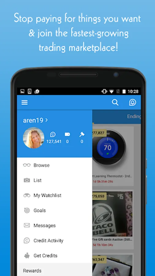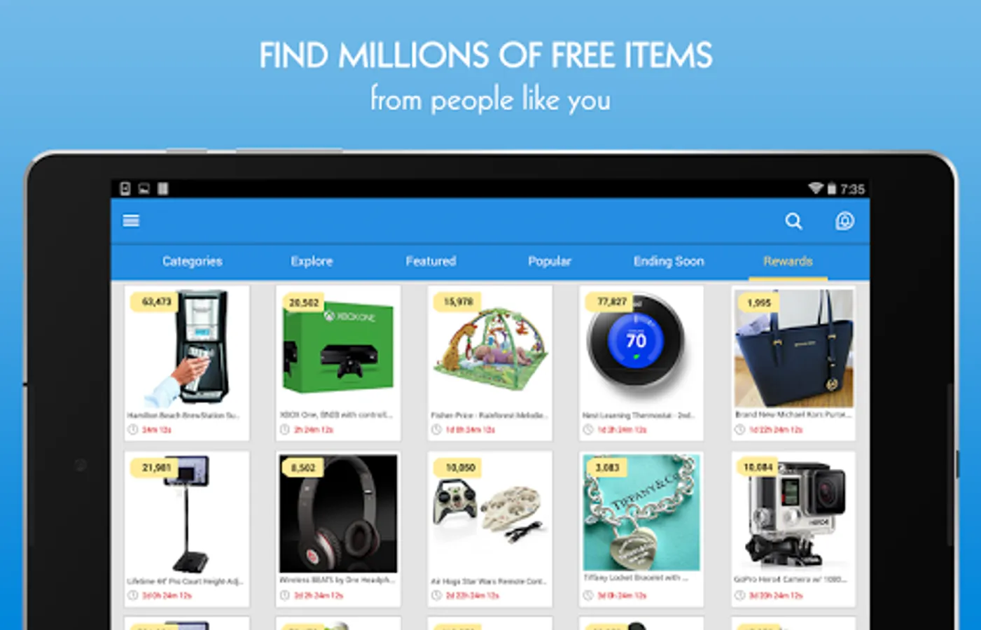 Listia is the best mobile marketplace, garage and yard sale that lets you exchange things you don't need for stuff actually want, all for FREE. Earn Points and Props by listing things you don't use, and turn it into stuff you'll love, like Jewelry, Electronics, Clothing, Gadgets, Books, Toys, Gift Cards, Games and Coins. The more you give and sell, the more free things you can buy without spending money.