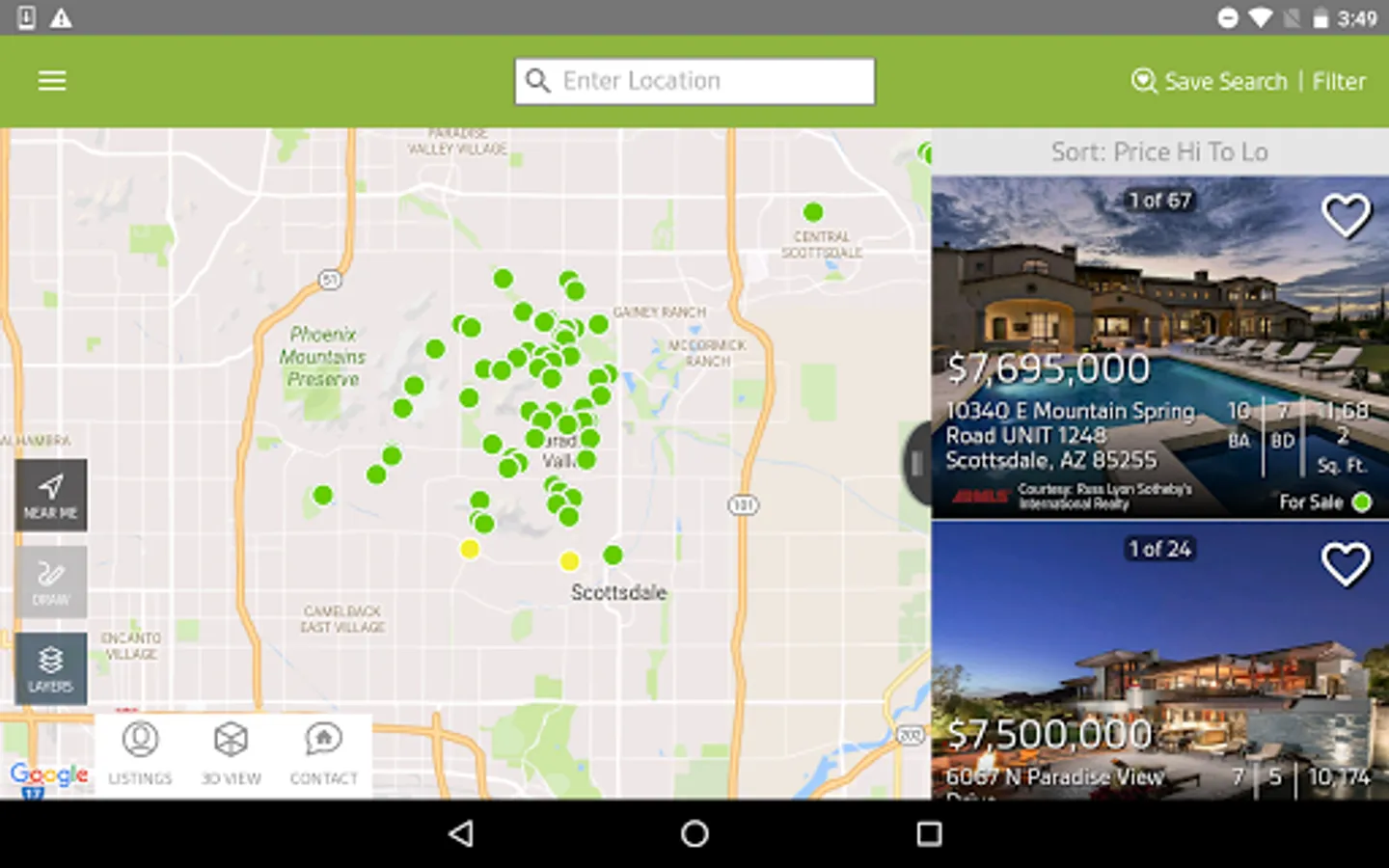 - Use the 3D feature to see homes for sale in any direction using your camera!