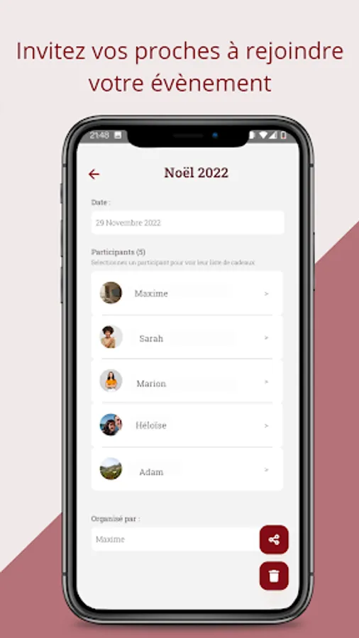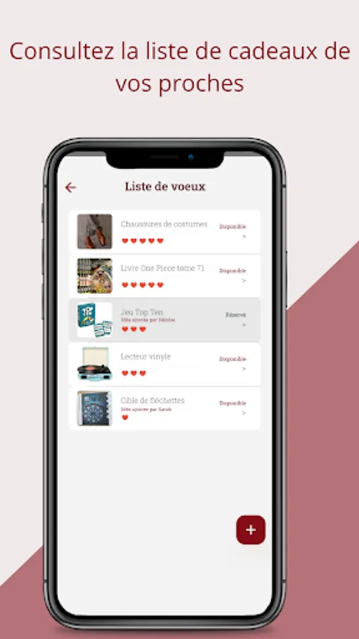 Bring together your gift list and the lists of your loved ones in the same event. Reserve freebies on their lists or add to them. All without the knowledge of the person concerned in order to keep the surprise effect and avoid duplicate gifts on D-Day. You can also create gift lists for people without a smartphone such as children or grandparents .