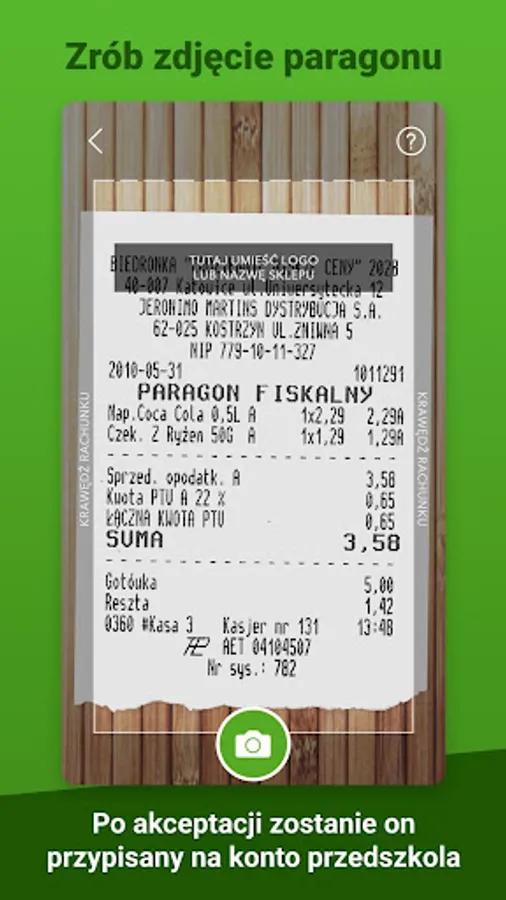 The installation will only take a moment, and after selecting a kindergarten, which will be collected for the receipts, you can start taking pictures - directly in the app. Each legible receipt that meets our basic requirements, the account will go to kindergarten. Details described on a dedicated website http://akcjaparagon.pl/help.html.