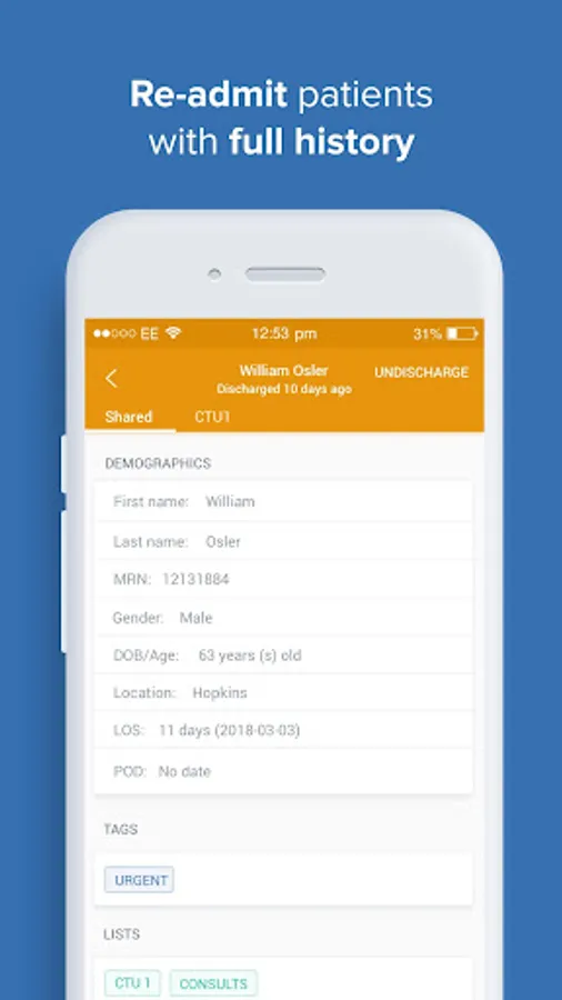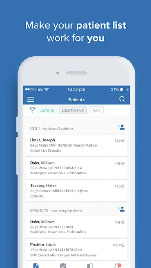 Fully customizable lists. Design your patient lists with as many fields as you need - without any help from IT.