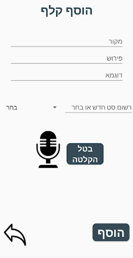 In the application there is an option to add a card that includes: source word and interpretation. It is also possible to add a short explanation and a recording.