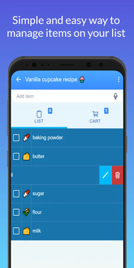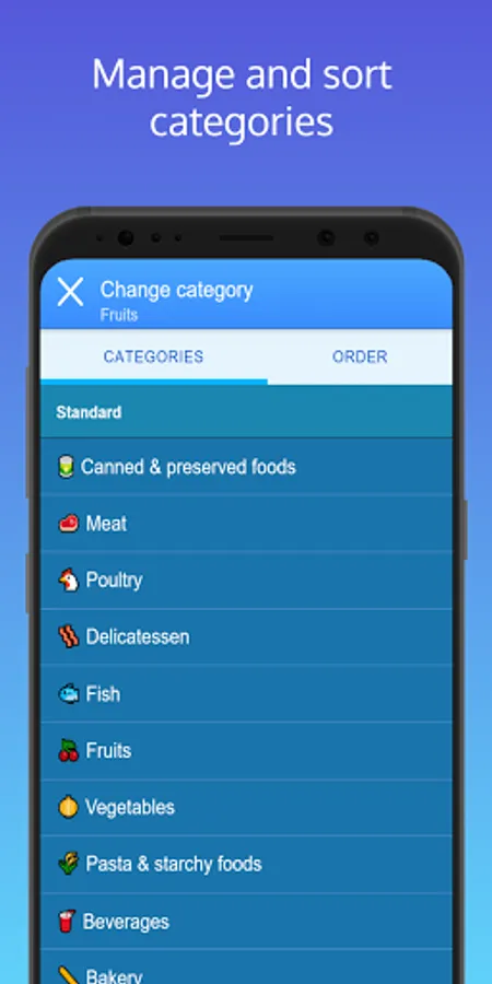 Say goodbye to disorganized grocery lists. Listy allows you to sort items alphabetically, manually, or by categories. You can also customize the order in which your categories are displayed.