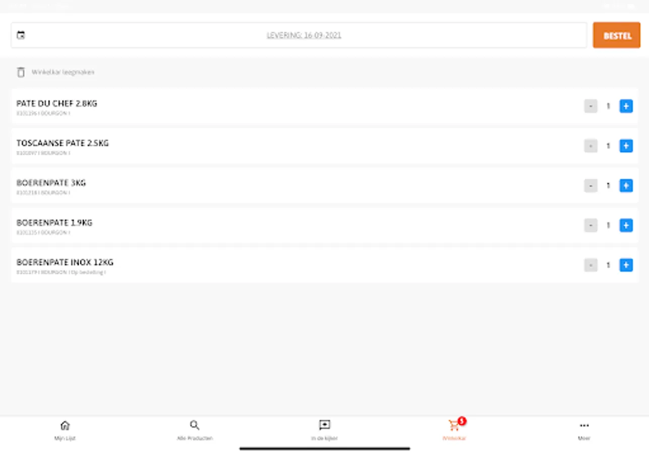 Log in with your Franky Fresh Food account and place (a part of) your order at the place where your stock is. Switch seamlessly between desktop, smartphone and tablet.