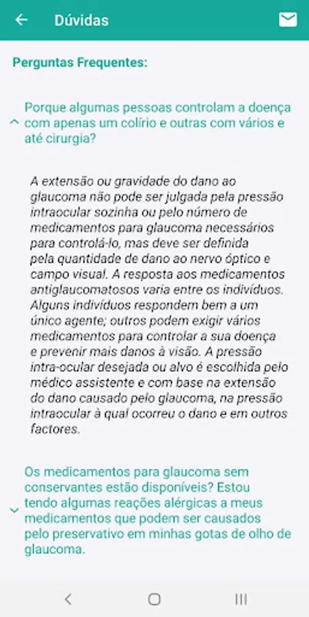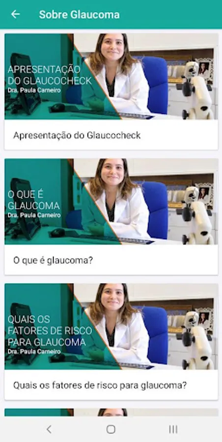 Also available are: a series of videos on glaucoma, contact with a doctor specialized in the subject and a list of frequently asked questions.