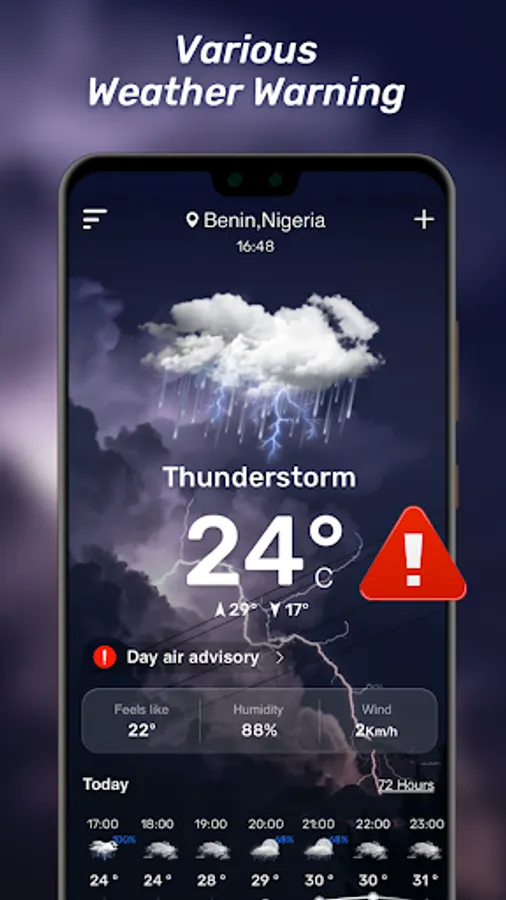 5. Severe weather warning and Weather alerts:Lightning detector, flash warning. Check the Rain risk, Storm risk and snow risk easily.