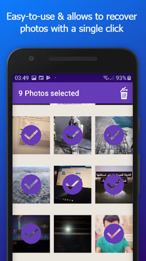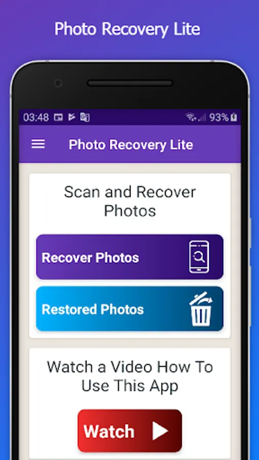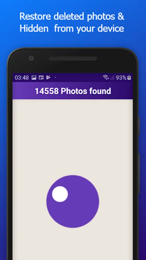 Photo Recovery Lite App search and Scan Anything in your Phone and finds all the Photos exist in your phone and allows you to restore them to your gallery.
