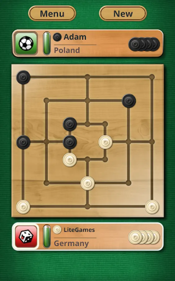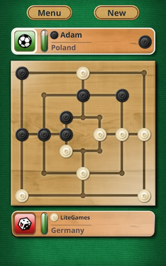 The Mills board game by LITE Games: play the popular game Mill with online multiplayer options for free on Android devices.