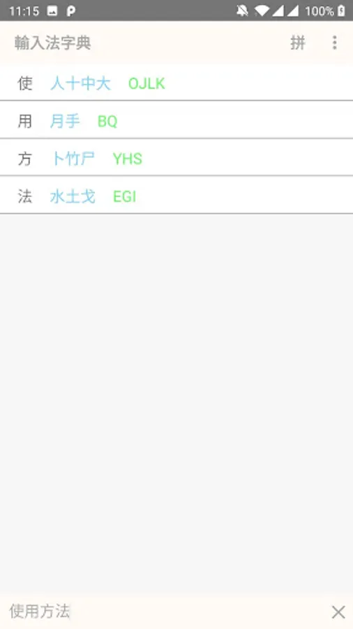 Cangjie. Pinyin input method dictionary, concise user interface, let you quickly query the input code