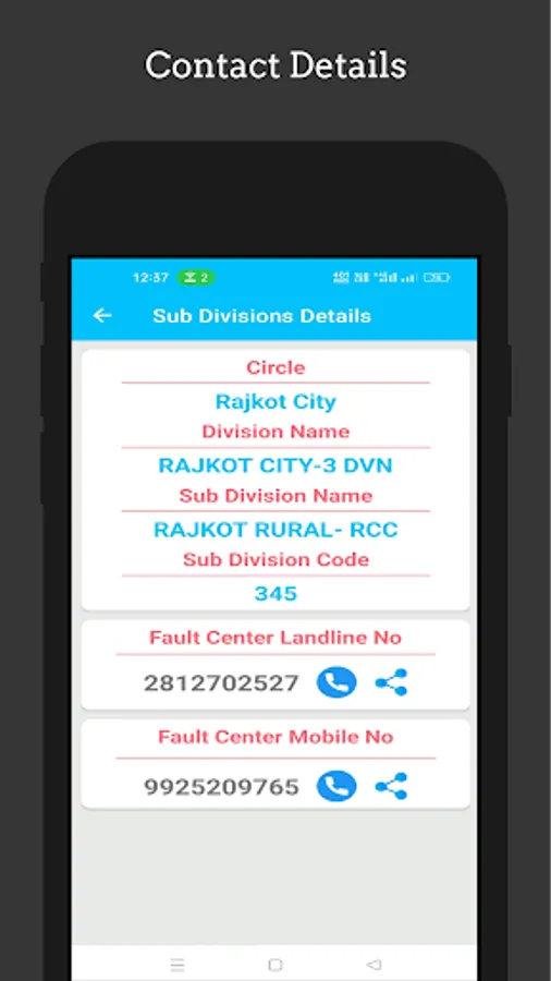 - Using this App you can view all PGVCL offices helpline numbers.