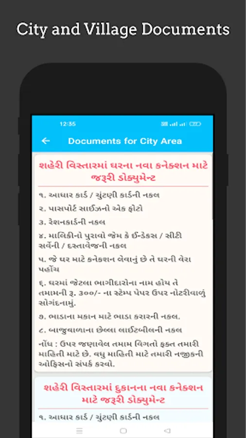 - In this app you can also view required list of Documents for New Connections and Name Change.
