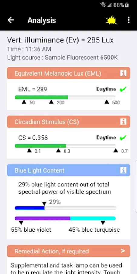 Circadian Light Meter (CLM) app is to assess the Circadian Entrainment and Blue Light Content of your lighting environment by measuring the amount of light entering the cornea at a vertical pane, which is called vertical illuminance (Ev) in Lux unit. After obtaining the Ev value, CLM then calculates the Circadian Entrainment according to two different metrics, namely, Equivalent Melanopic Lux (EML) and Circadian Stimulus (CS). Those two metrics are adopted by WELL Building Standard v2 under Feature 54 Circadian Lighting Design.