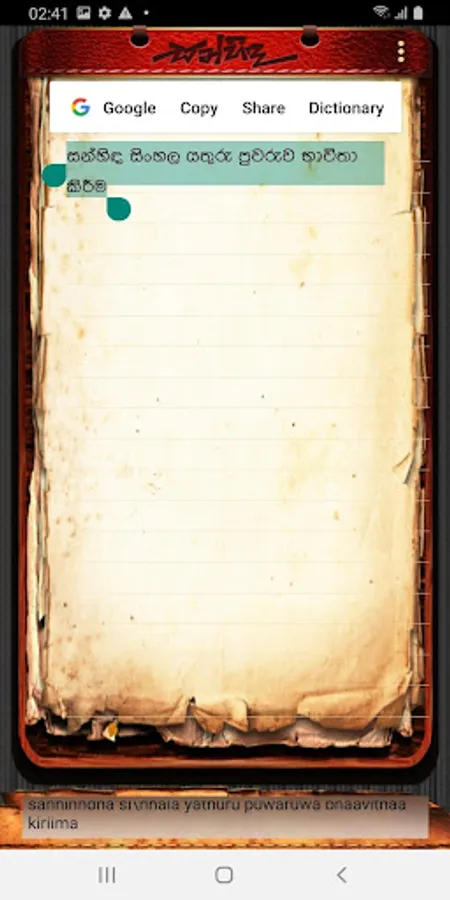 As you know, Android devices doesn't have a Sinhala keyboard for you to type your Facebook wall post or Twitter update in Sinhala. Sanhinda helps you to do all these in simple two steps. All you have to do is type in your text with English keyboard, meantime Sanhinda transliterates this text in to Sinhala for you Offline. After you type your post, status, email in Sinhala you could share it with your friends within app it self.