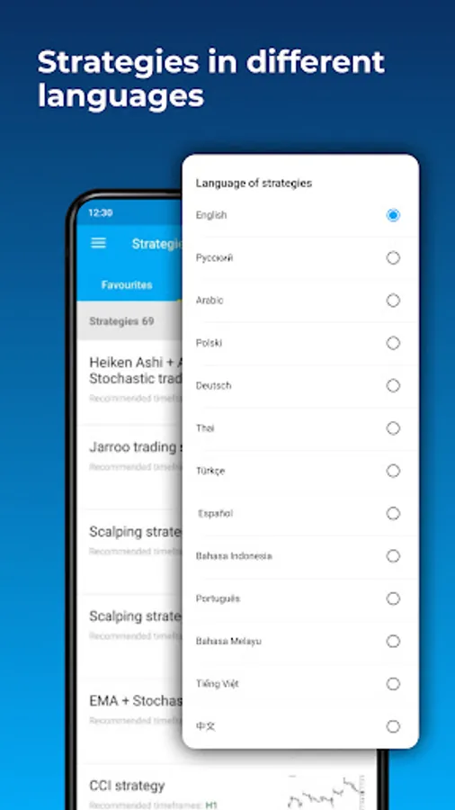This application gives you access to all trading strategies, which have been developed by the experts and can be used by the traders, having various experience levels and using different currency pairs. These are the strategies, which fit every taste!