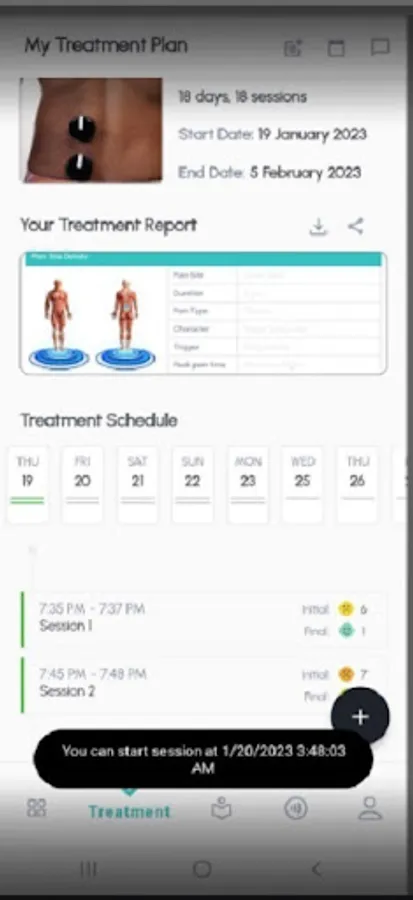 LiteMed Curapod is an Android application which is used to control the intensity and duration of light emitted by LiteMed's Curapod device. The device is placed at the pain location on the human body and strapped if required. Using the app, the device light is turned on for a controlled amount of time (say 30 minutes) and a controlled intensity and wavelength of light. The app allows users to add a Pain Site and record the Pain Scores before and after treatment.