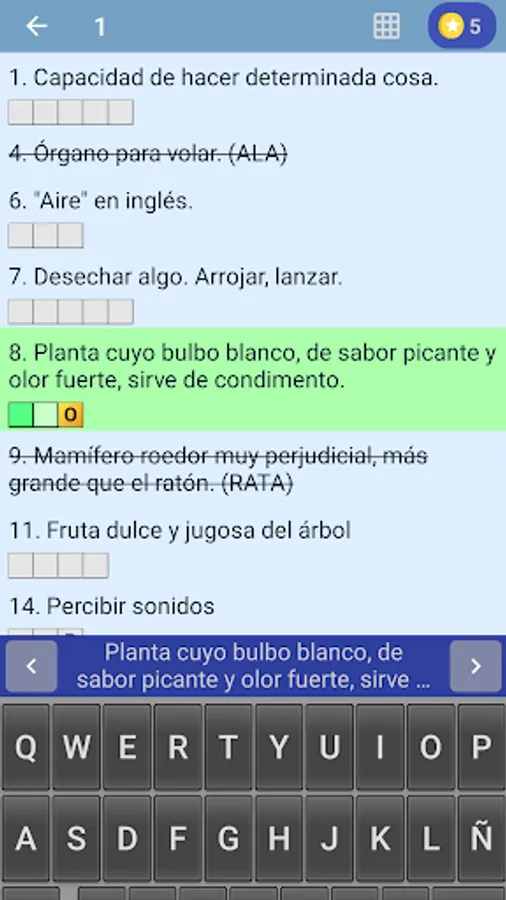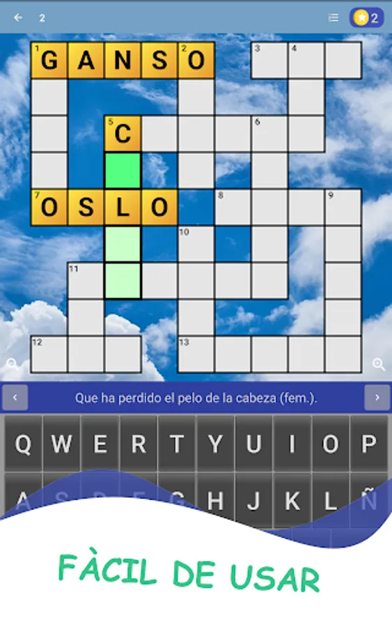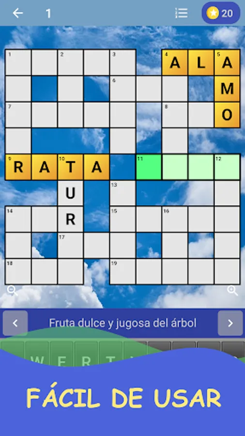 To win the game you must find all the vertical and horizontal words that make up the puzzle based on their definitions.
