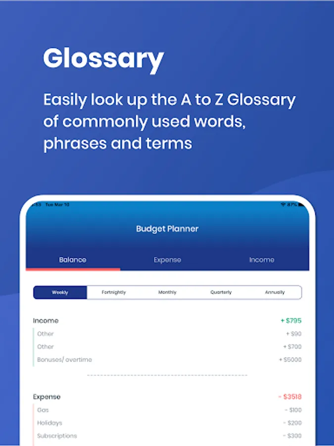 The App includes a budgeting tool to help you plan and track your spending. Videos and short quizzes are also included to ensure you understand what you need to know. A self-assessment tool gives you a WalletSmart Score and directs you to the areas where you need the most help.