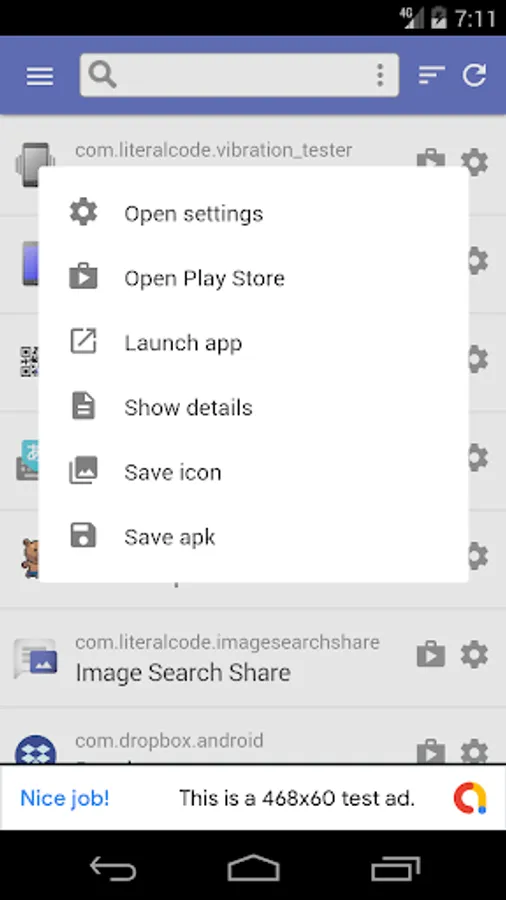 Manager app that lists all installed apps on your device.