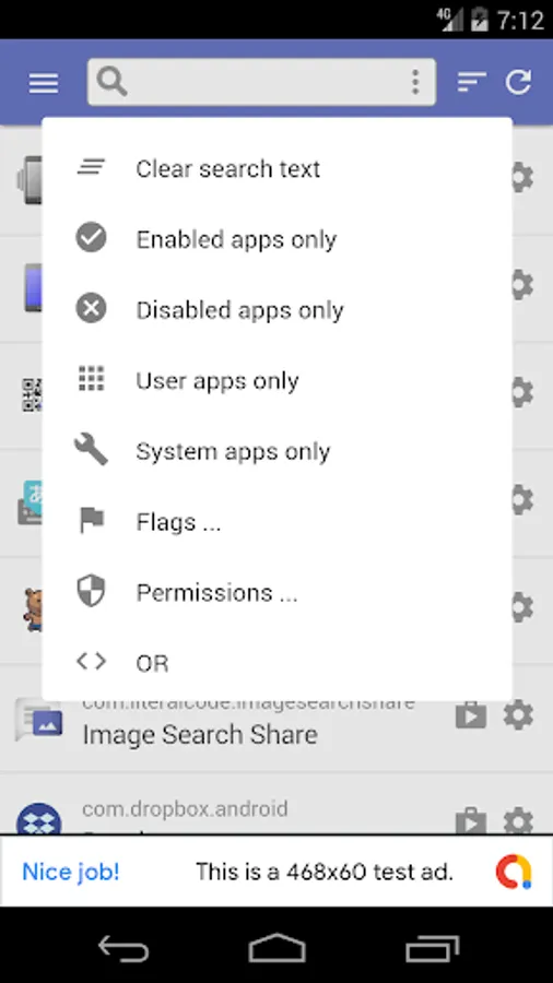 * You can filter the app list by the search box at the top of the screen, which is partial match of any app name / package name.