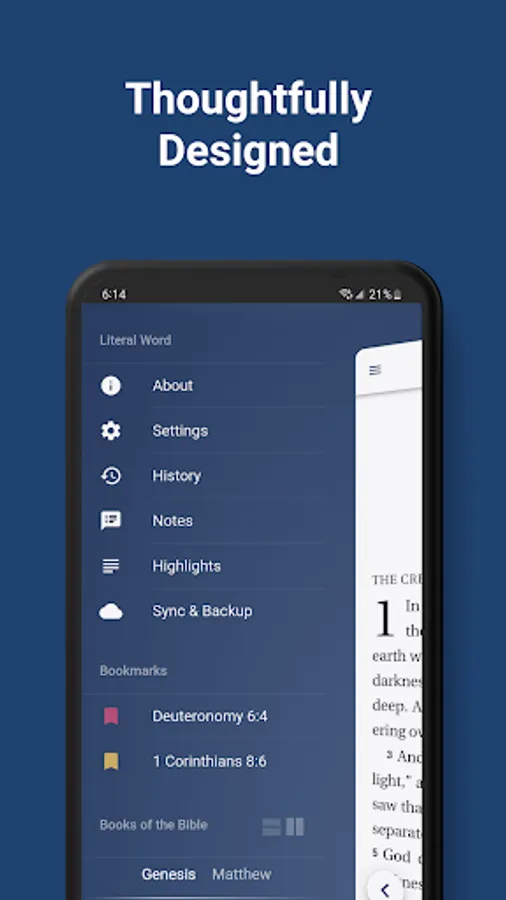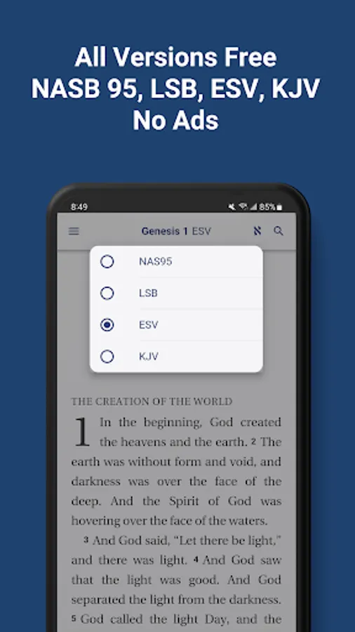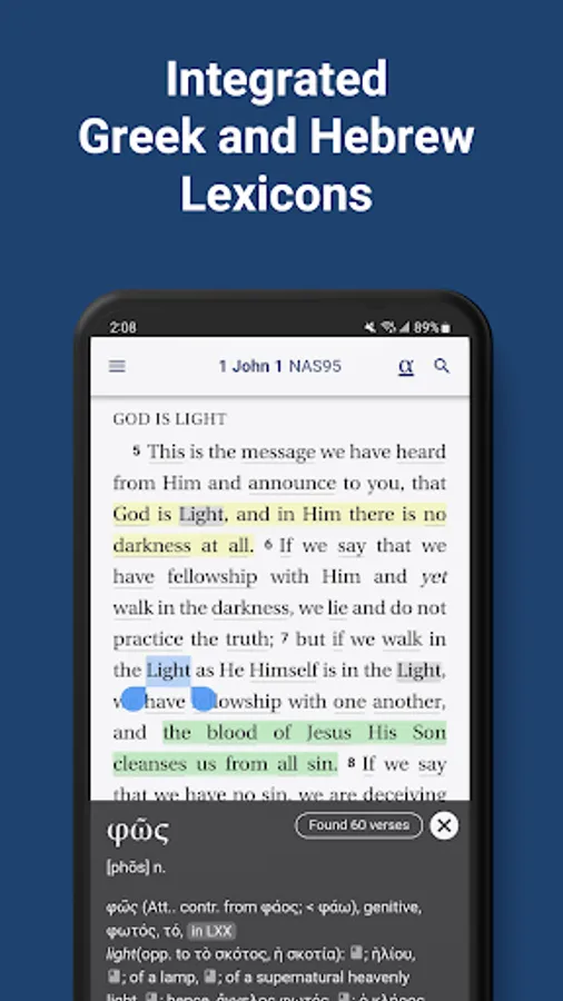This belief has driven every decision we've made designing Literal Word. The app is 100% free and functional even when you're offline. The NASB 1995, LSB, ESV, and KJV translations of the Bible were selected for faithfully utilizing a word-for-word instead of a thought-for-thought translation method. Each passage of the Bible is clean, customizable, and convenient to access, allowing the reader to focus exclusively on the God-breathed content. Word searches are simple but powerful, featuring a unique visual interface for organizing results with precision, and complete lexicons for original Hebrew and Greek words can be viewed with just a couple taps.
