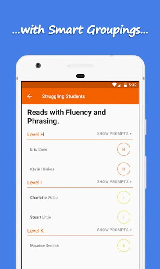 Small groups and readers workshop are some of the best methods for teaching literacy. Literator equips you with strategies for your classroom through intuitive prompts, highlighted trends, and automatic groupings. You can do all of these things with just a few taps on your phone for free. It is simply the best tool for formative assessments with instant analysis and actionable steps. Literator is based around guided reading strategies with focus on the Fountas Pinnell (F&P) method of literacy. Lexile Levels and DRA are coming soon.