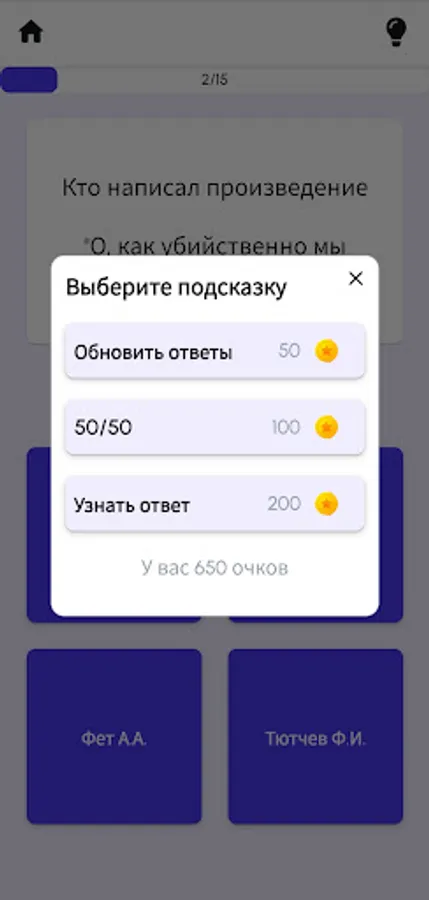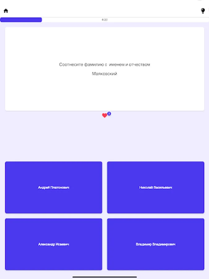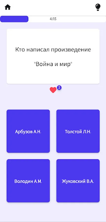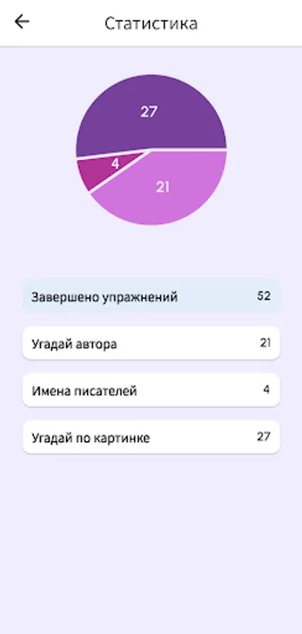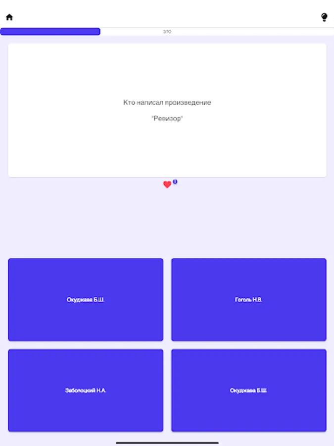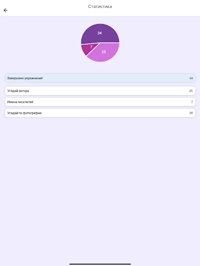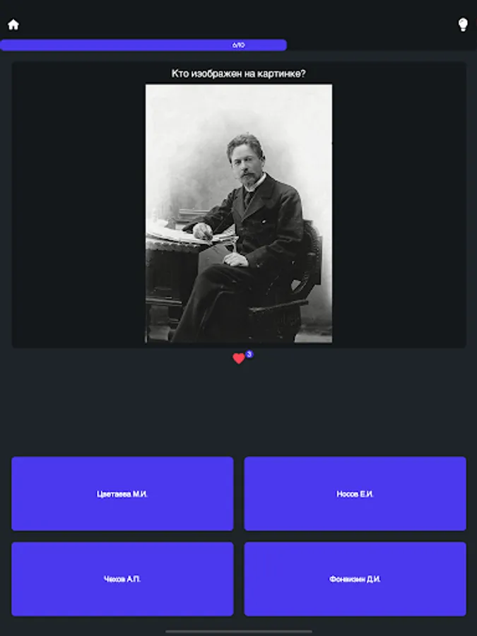 The app offers an interesting and fun way to learn Russian literature. The quiz format allows you to quickly and efficiently remember information about writers and their work.