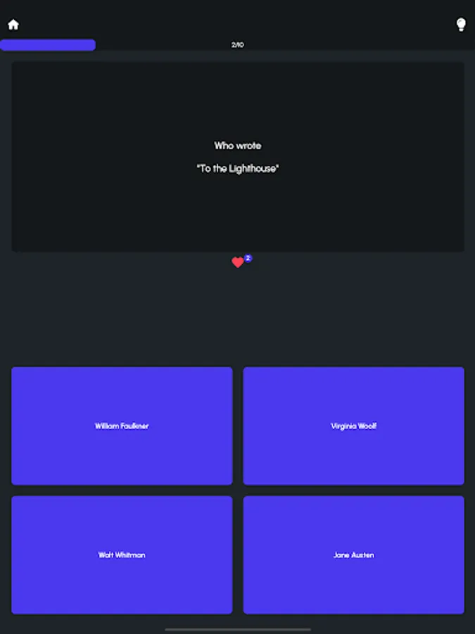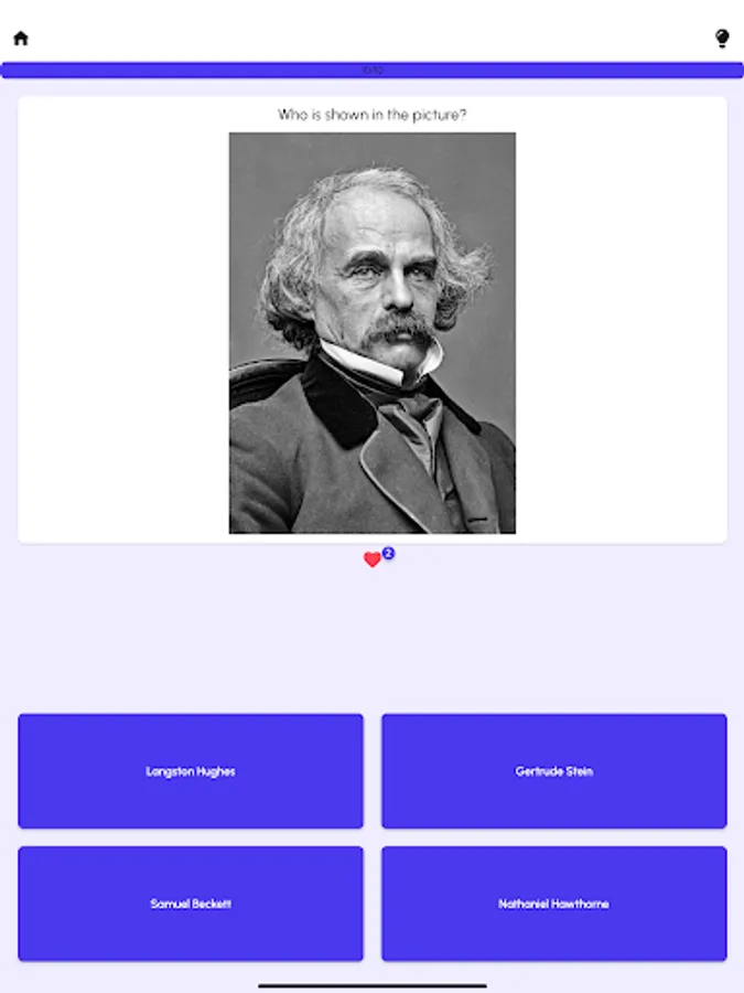 The app offers an interesting and entertaining way to study world literature. The quiz format allows you to memorize information about writers and their works more quickly and efficiently.
