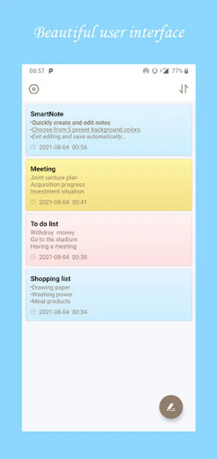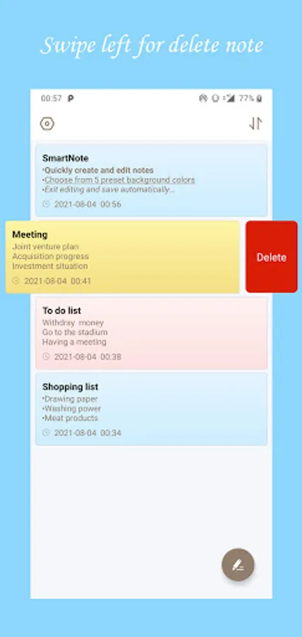SmartNote is a free note-taking application that can help you remember the things you plan to do in your life and is a good assistant in your daily life. It has the following major functions.