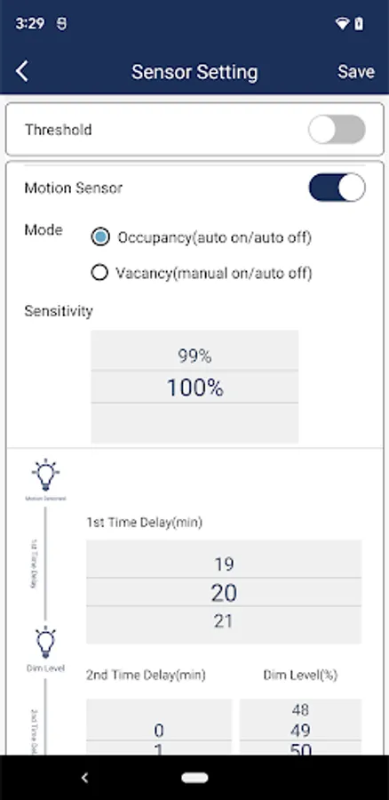 The SupraLink app is optimized for efficient onsite startup and maintenance activities. It allows end-users to easily modify the settings and operation of the fixtures, sensors, and wall switches in a zone, aiding in meeting energy code requirements.
