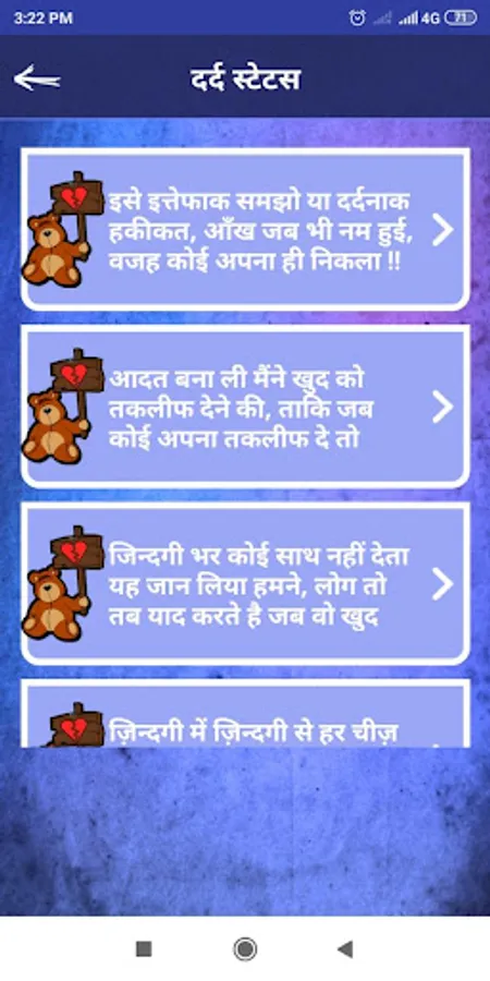 Dard Shayari is unique way to express yourself your feelings deep in heart. This app is the right place for Specially Dard Shayari on every Best in class