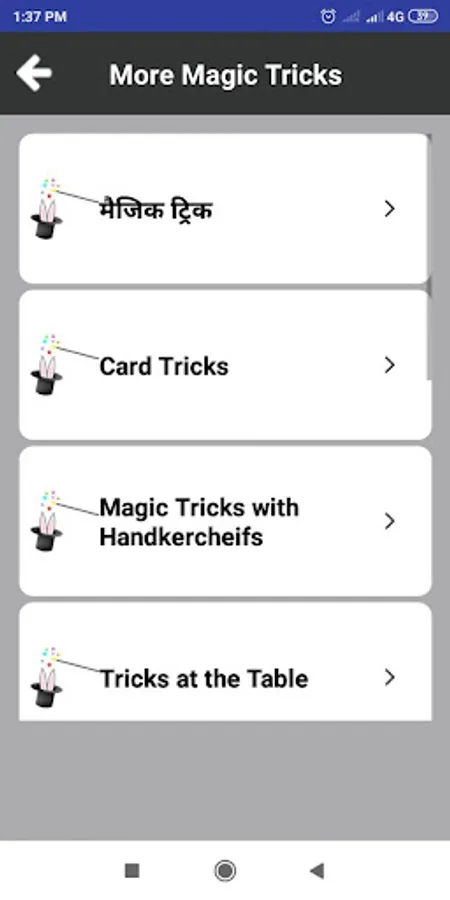 Hindi Magic Tricks is a free application with thousand of Magic Tricks to help you learn the secret behind magic tricks and learn to do it yourself.