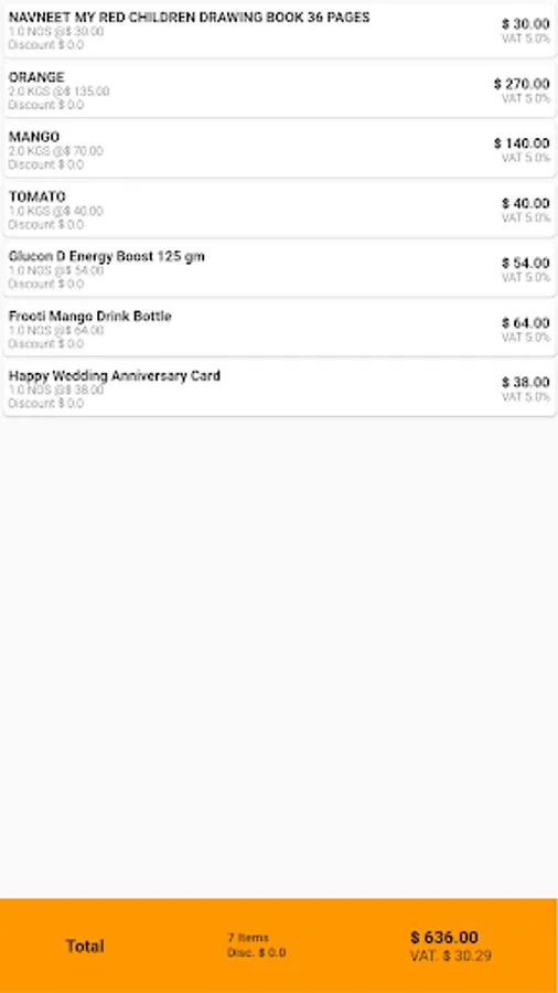 - Displays all necessary order information: items, taxes, discounts and total amount due.