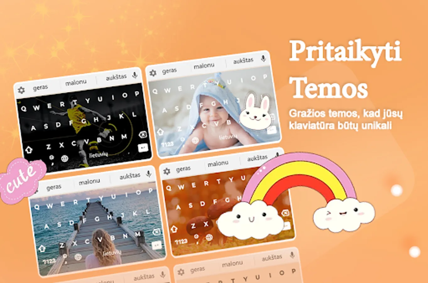 2. The keyboard apps 2022 has two main features; themes and a Lithuanian keyboard. In order to install the app, the user is required to give necessary permissions to the app. It authorizes the user to choose the Lithuanian keyboard, moreover, the user can also enable it directly from the menu.