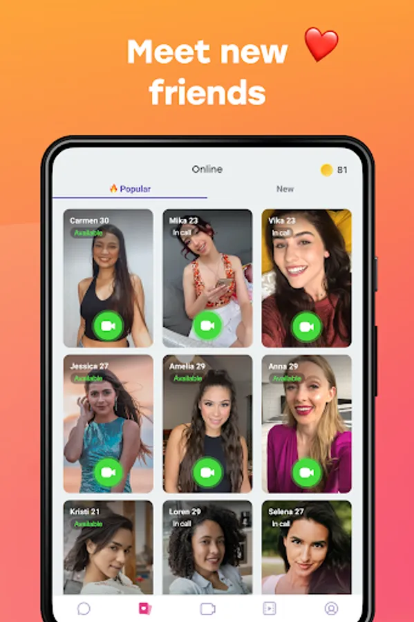 π Make new friends in full-screen video view (as big as your smartphone screen).