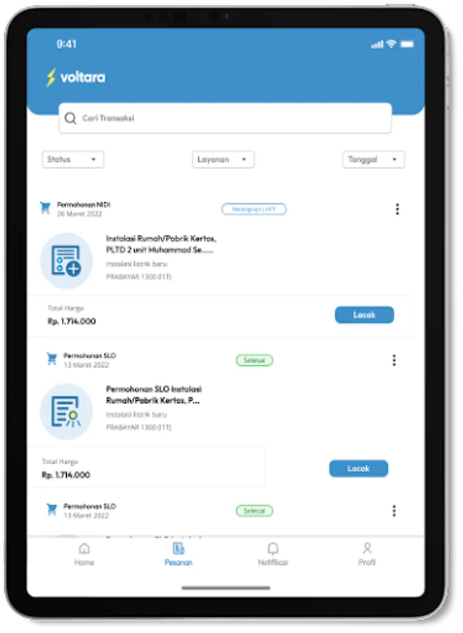 Voltara provides convenience for users to be able to directly choose a business entity they trust to process NIDI supervision, followed by the appointment of the Technical Inspection Institute (LIT) for the issuance of SLO, along with the payment in 1 application. Our payment system has been proven safe and has been approved by the OJK.