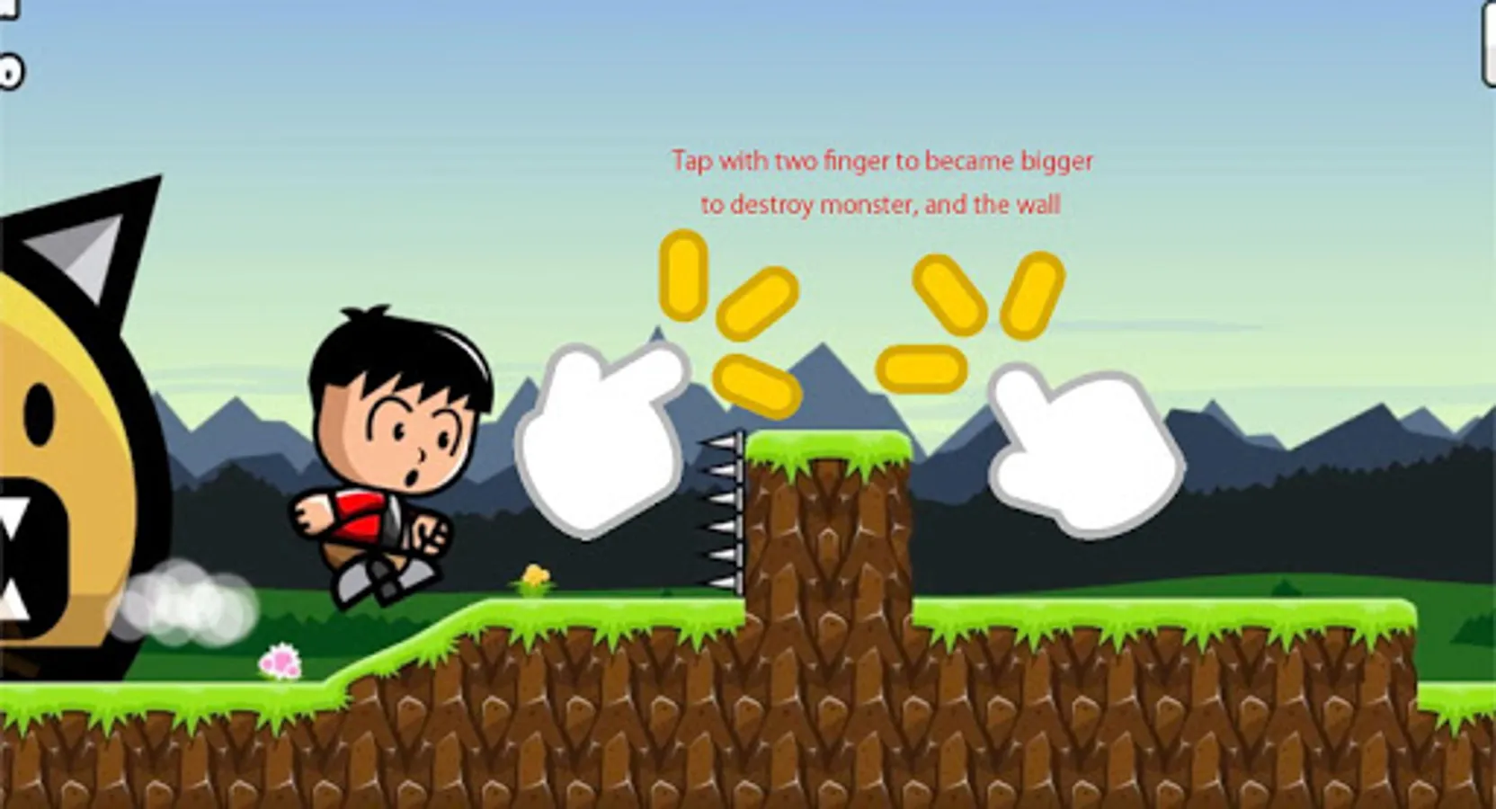 +Touch with two fingers at the same time for change small/bigger to destroy monster or jump