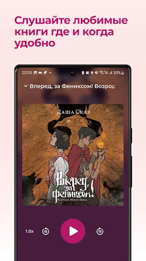 No time to read? Listen! In the application “Litnet. Audiobooks" you will be able to do this in the background and adjust the playback speed, which is thought out by our team for the most comfortable book experience.