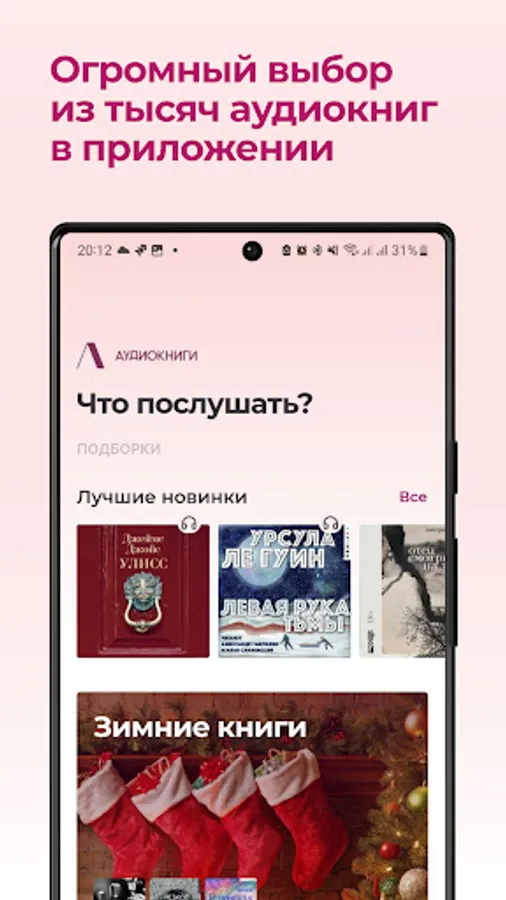 Are the old books already gathering dust? Download “Litnet. Audiobooks" and forget about boredom: the extensive library includes detective stories, fantasy, science fiction, novels, audio fairy tales and even audio series, as well as much more. In addition, our editors create selections in accordance with current literary trends, which means you will always be on the crest of a wave of literary novelties and will be able to enjoy current audiobooks.