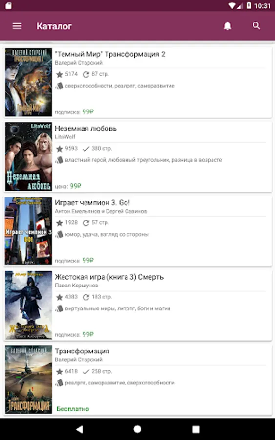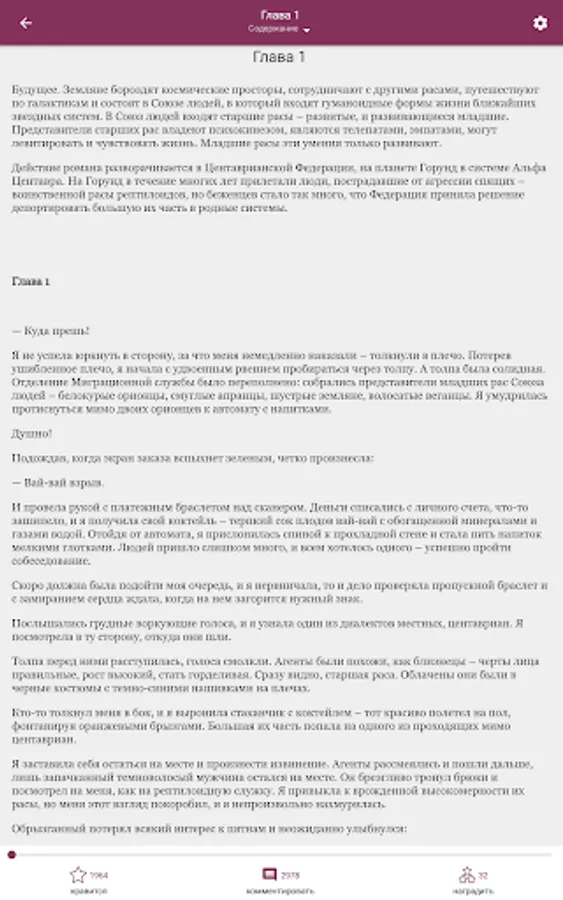 Litnet provides access to more than 250,000 works of different genres in Russian: romance novels, detective stories, historical novels, science fiction, prose, women's novels, drama, fantasy, children's literature and many other popular genres in literature. Reading a book is interesting and informative, and reading the stories of your favorite author is an incomparable hobby.