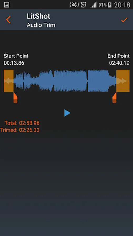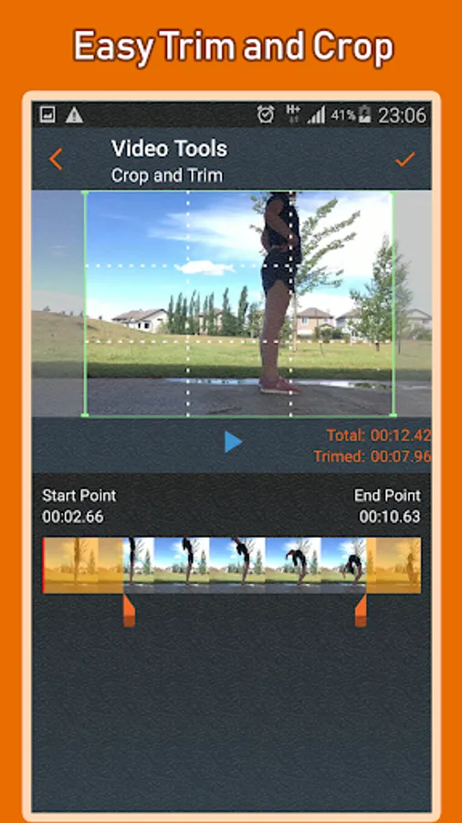 In the editor, you may prefer adding audio. Easily select any music/sound in your device and add to you your video.You can also trim your audios.