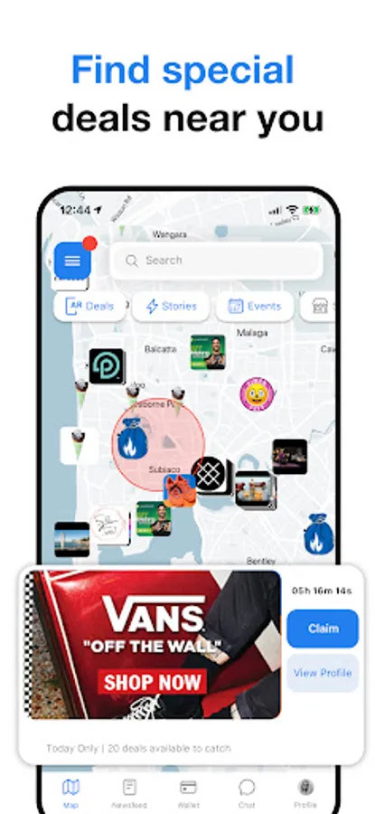 • Turn on permissions to find deals, zoom in and tap to view the offers