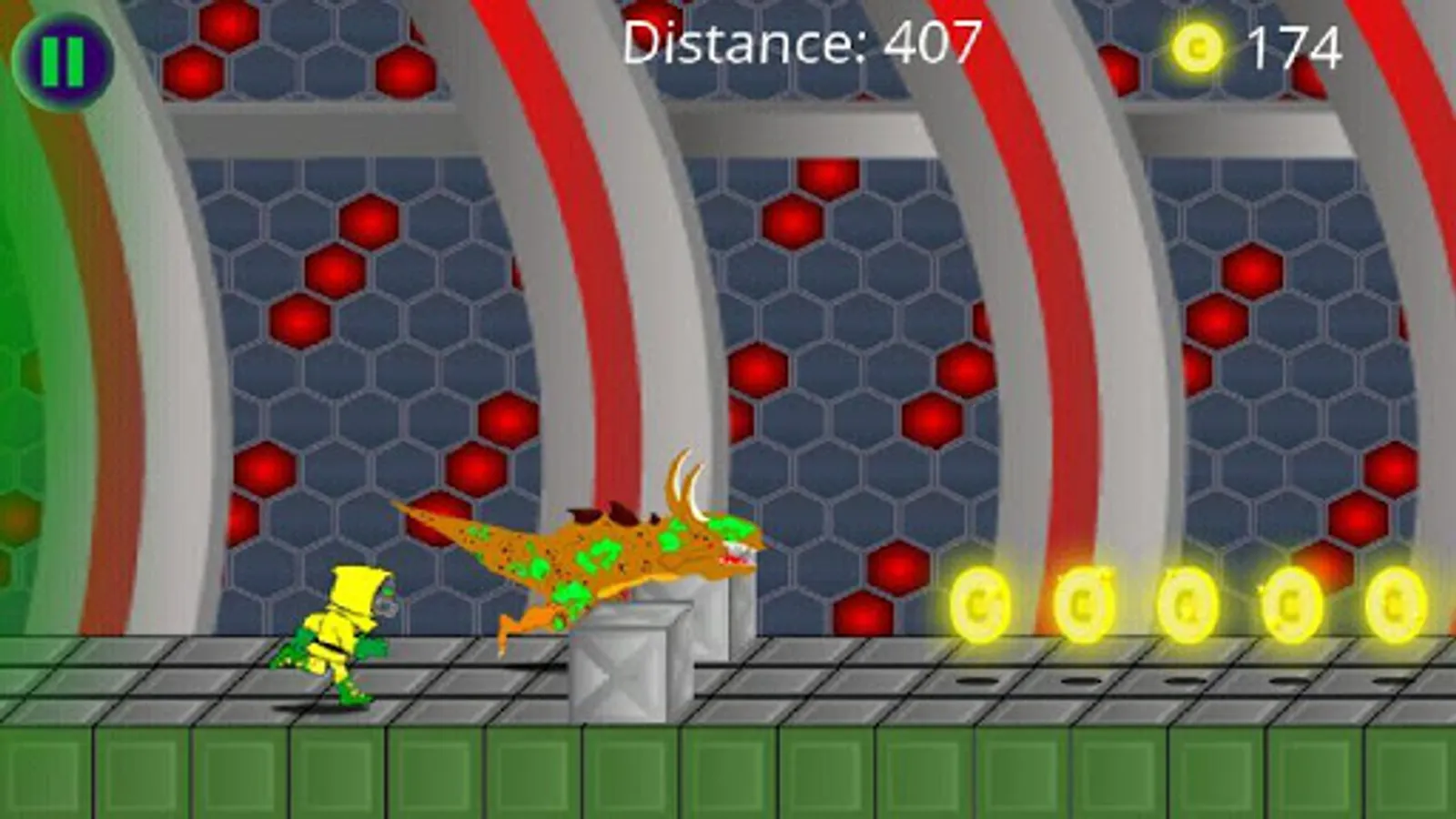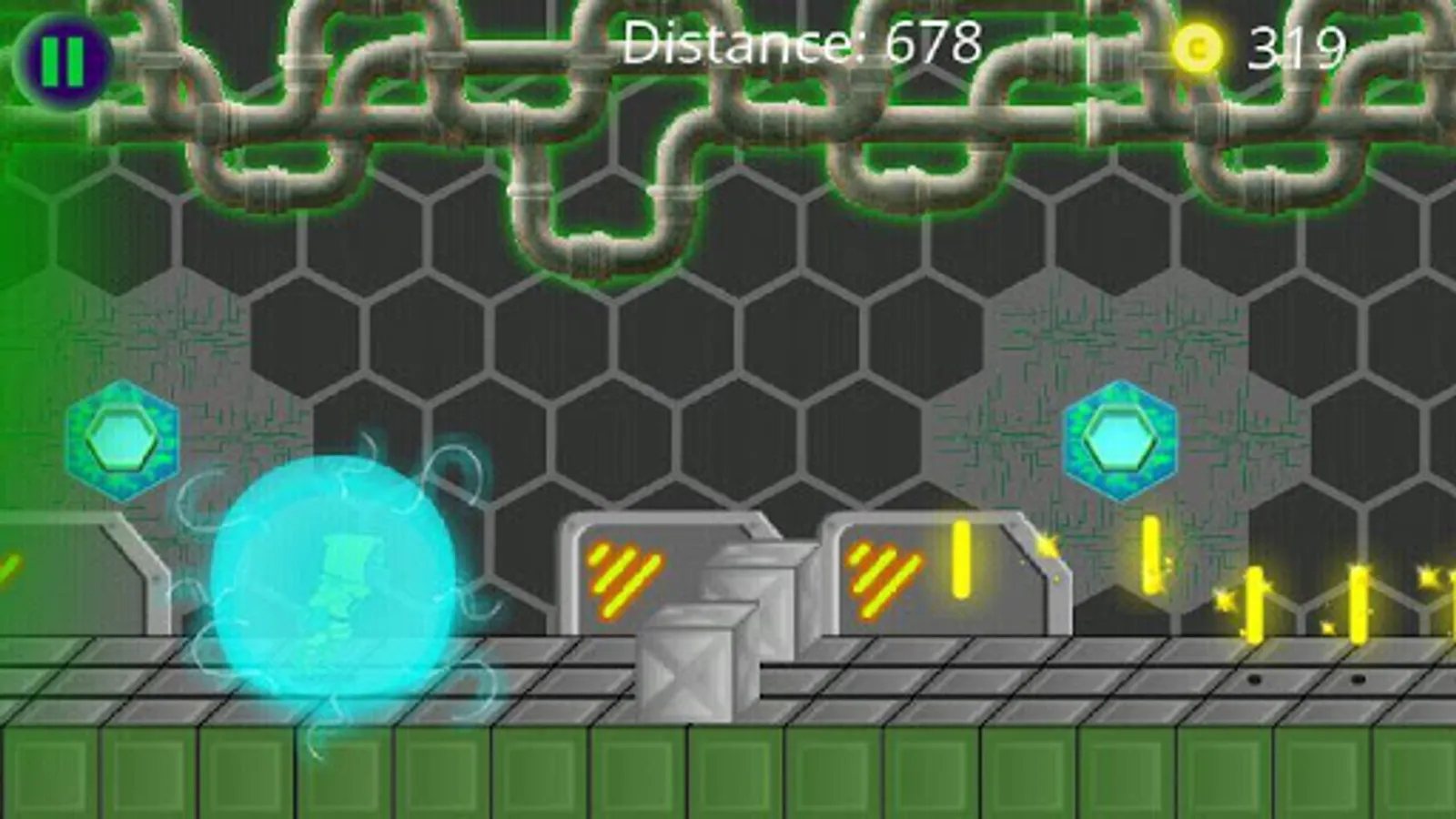 Toxic Dash is a 2D side scrolling endless runner game that brings a new perspective to side scrolling runners. You can swipe the screen up or down to switch between three lanes and tap to jump over obstacles. The farther you get with in the game the faster you go and the harder the obstacles become. Jump over boxes, avoid unstable ground, collect coins to purchase equipment that can help you progress farther in the game and dodge lasers all while trying to escape a deadly toxin and a mutated monster that is chasing you through a laboratory.