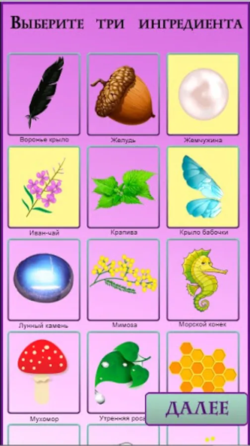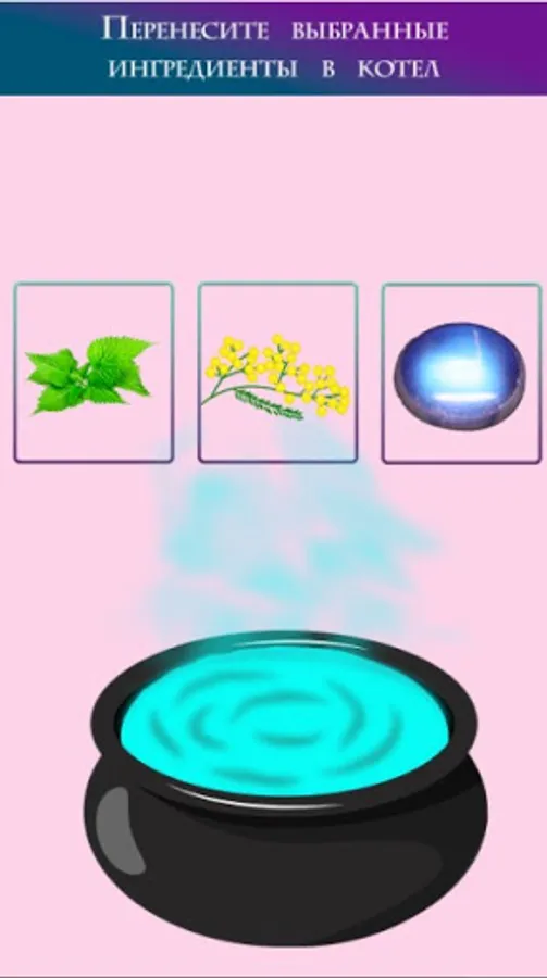 For divination, you just need to choose three ingredients, and then add them to the cauldron.