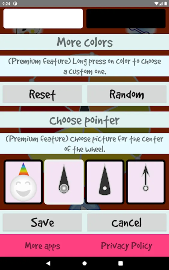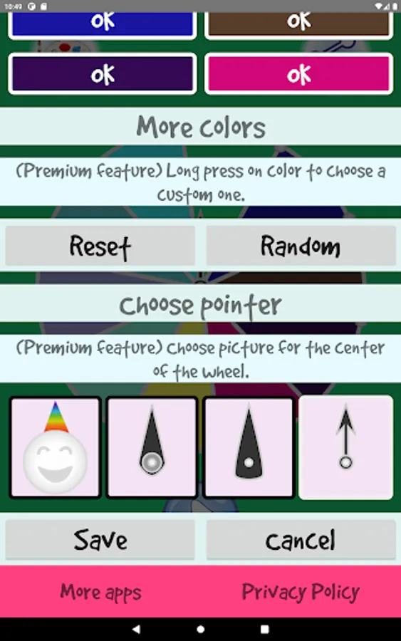 - Choose pointer: Allows you to select a different pointer for your wheel.