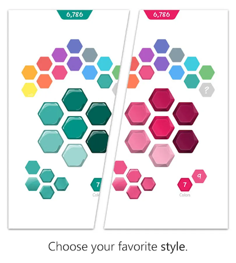 Relieve stress by connecting hexagons in different colors, and switch between 5 different play modes.