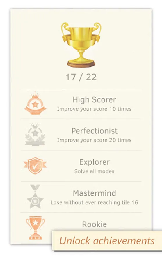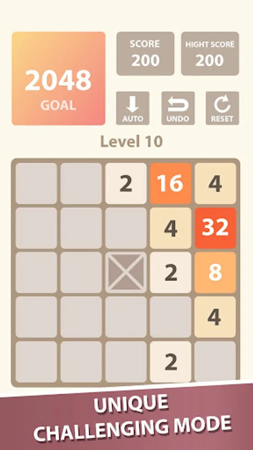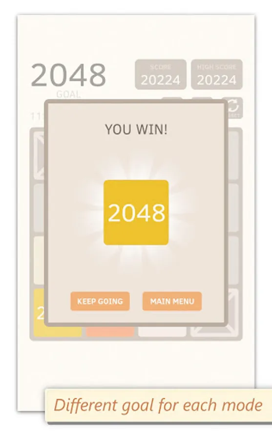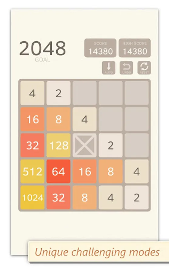 Swipe to move the tiles. Tiles with the same number will merge into bigger tile. Try to reach the goal tile. Solve different modes and unlock achievements.