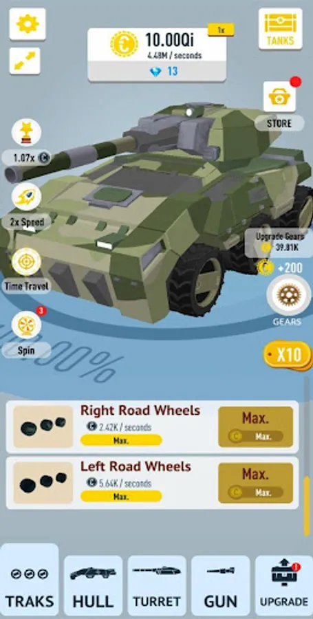 In this clicker simulator, your goal is simple: become the famous general with the biggest army in the world! Every tank earns money, even when you are offline. Therefore, upgrade war machines and unlock better ones to build the most powerful army in the world. 🌎 The purpose of the game is to have fun and collect all historically accurate tanks. Choose your strategy and relax. Enjoy the addictive idle tank game. Are you ready to rumble? 💪